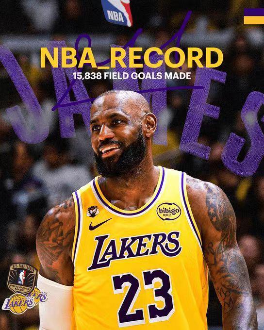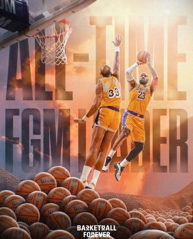 41歲的詹姆斯NBA生涯常規(guī)賽總進球數,超越湖人傳奇賈巴爾15837球,正式登頂歷史第一加冕歷史總運動戰(zhàn)進球王。