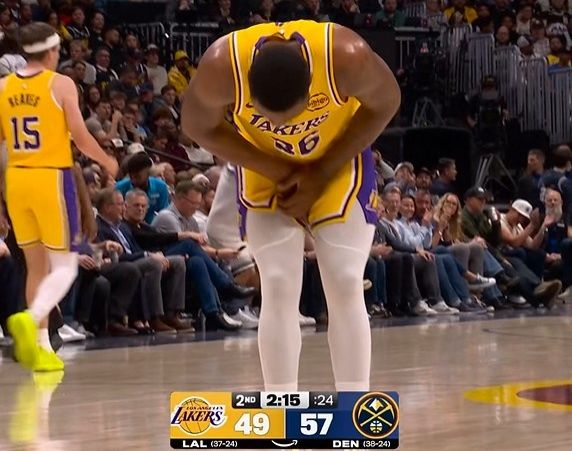 中場休息回來,海斯頂替?zhèn)说陌D在下半場首發(fā),海斯率先空接暴扣,掘金一波7-0攻勢重新擴大15分優(yōu)勢。里夫斯連得7分,約基奇與布勞恩接連得分維持14分優(yōu)勢,東契奇補籃命中,掘金再得3分維持15分優(yōu)勢。斯馬特與八村壘各中一記三分,穆雷中投得分,湖人一波7-0攻勢追到差4分打停掘金。掘金回敬一波9-2攻勢,東契奇接連兩記三分命中,約基奇兩罰全中,三節(jié)結束湖人86-93落后掘金。前三節(jié)比賽,湖人三分22中11,東契奇27+8+4與詹姆斯12+5+4+3;掘金三分25中12,約基奇20+10+12+7失誤與穆雷26+5+5三分。