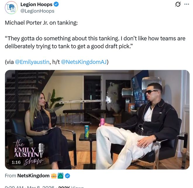 賽后他也公開炮轟本賽季聯(lián)盟風(fēng)行的擺爛行為:“聯(lián)盟得對(duì)這種擺爛行為做點(diǎn)什么了,我很討厭一些球隊(duì)為了拿到更好的簽位故意擺爛輸球?!?/p>