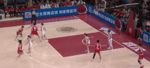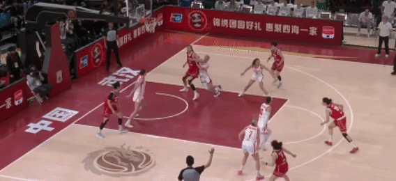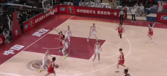 第四節(jié):李星諾也出戰(zhàn),尋找感覺。中國女籃大比分領(lǐng)先,保持球員的熱身狀態(tài)。唐子婷給到劉禹彤,后者一個(gè)很輕松的節(jié)奏變化得分: