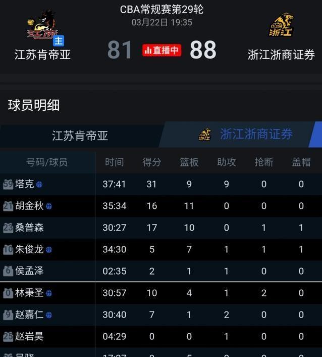 技術(shù)統(tǒng)計(jì)顯示:塔克狂攬31分9籃板9助攻,幾乎填滿數(shù)據(jù)欄;胡金秋忍痛作戰(zhàn),貢獻(xiàn)16分11籃板;江蘇大將賈爾斯轟下37分19籃板的統(tǒng)治級(jí)表現(xiàn);而那位改寫比賽走向的年輕人,同樣交出15分7助攻2搶斷的全面答卷。