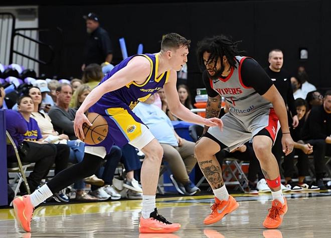 本場比賽中,被湖人下放到NBA發(fā)展聯(lián)盟賽場進(jìn)行鍛煉的側(cè)翼新星道爾頓-克內(nèi)克特(Dalton Knecht)的表現(xiàn)也算是有了一些回暖??藘?nèi)克特全場出場27分鐘,投籃14中9,三分線外3中1,罰球5中4,得到了24分13籃板2助攻1搶斷1蓋帽的數(shù)據(jù),還有8次失誤和4次犯規(guī),正負(fù)值為+2。克內(nèi)克特在進(jìn)攻端的效率明顯提升了,他展現(xiàn)出了自己不俗的突破能力和終結(jié)能力并且也是得到了不少的分?jǐn)?shù)的,他也展現(xiàn)出了一定的投射能力。克內(nèi)克特在防守端也是在籃板保護(hù)方面發(fā)揮出了自己的作用,同樣給球隊提供了不少的支持。只是克內(nèi)克特在本場比賽中在失誤控制方面的表現(xiàn)一塌糊涂,這一點(diǎn)也是令人有些擔(dān)心的,也是他在本場比賽中的最大問題了。