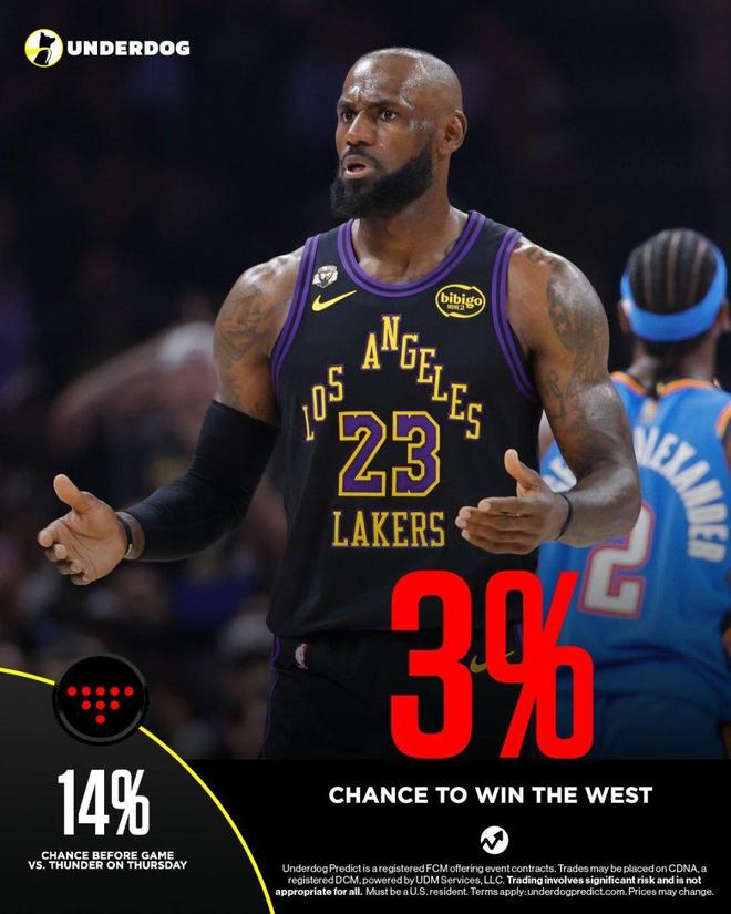 傷病的影響立竿見影,湖人的奪冠前景急劇下滑。數(shù)據(jù)顯示,湖人贏得西部冠軍的概率從4月1日(對陣雷霆賽前)的14%(西部第4)大幅下滑至4月4日的3%(西部第8),排名的跌落和概率的驟降,直觀反映出球隊在失去東契奇和里夫斯后的實力斷層。