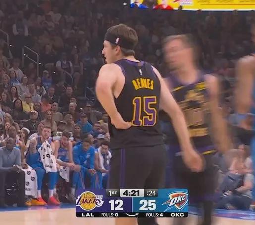里夫斯首節(jié)失誤連連,沒打完就捂著腰提前離場檢查。不過后來又回來了,半場落后31分后,他仍帶傷出戰(zhàn)下半場,最終傷勢惡化。