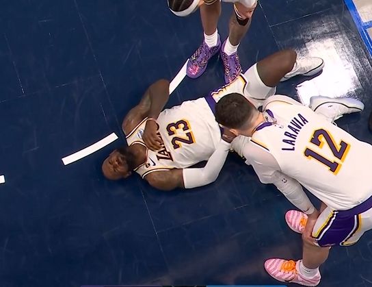 詹姆斯還一度被米德?tīng)栴D頂?shù)礁共课恢茫瑢?dǎo)致他痛苦倒地,所幸并無(wú)大礙,畢竟湖人已經(jīng)“傷不起”。