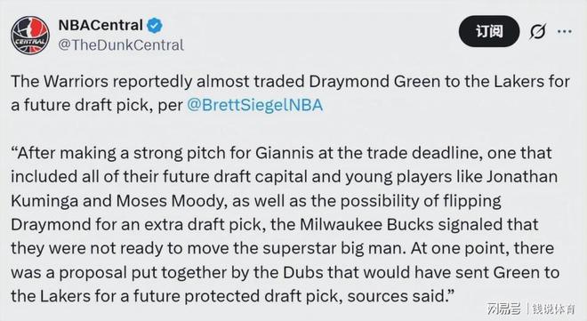 金州勇士更是成為其中最激進的追求者,球隊老板拉科布一心促成庫里與字母哥的史詩級聯(lián)手,甚至打造了一套環(huán)環(huán)相扣的交易計劃,而送走球隊四冠功勛追夢格林至洛杉磯湖人,正是這套計劃里的關鍵一步。