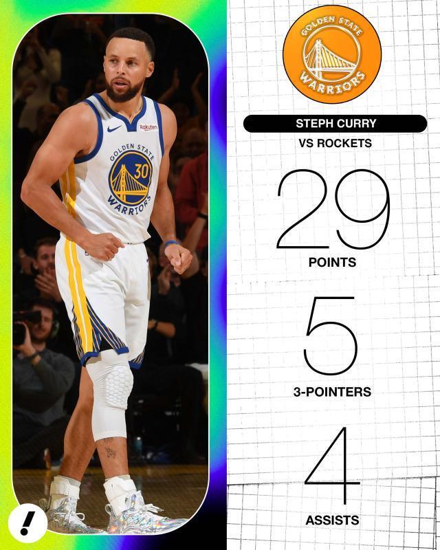 此役庫里時隔27場完成復(fù)出,他替補出戰(zhàn)26分鐘,得到29分4助攻2籃板,三分線外10中5。在他登場的時間里,勇士贏了火箭12分,但在庫里休息的22分鐘內(nèi),勇士輸?shù)?3分。除了庫里,波杰姆斯基18分,“追夢”格林7分12助攻6籃板。