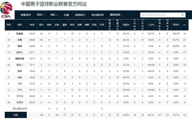 北京男籃贏下這場比賽的兩大功臣,無疑是杰曼和陳盈駿,這兩人支撐起了球隊的進攻。杰曼在這場比賽中火力全開,19投12中砍下了36分5助攻2搶斷的數(shù)據(jù);陳盈駿也是大殺四方,12中7得到了26分3個籃板10次助攻。這兩人合力砍下了62分,幾乎占全隊得分的三分之二。周琦這場比賽的得分雖然不高,但防守端的作用還是非常明顯的,正負值達到了全場最高的+25,這足以說明了周琦在場上的作用。