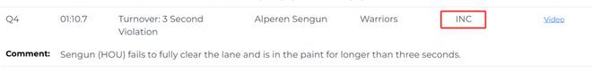 第二次漏判發(fā)生在距離比賽結(jié)束還剩1分10秒時(shí),報(bào)告指出,火箭球員申京在禁區(qū)內(nèi)停留超過三秒,這是一次漏吹的進(jìn)攻三秒違例。申京隨后命中一記拋投,還是一次2+1。而如果裁判正確響哨,申京拿下的這3分本該無效。顯然,這次漏判還是勇士吃虧,火箭獲利。