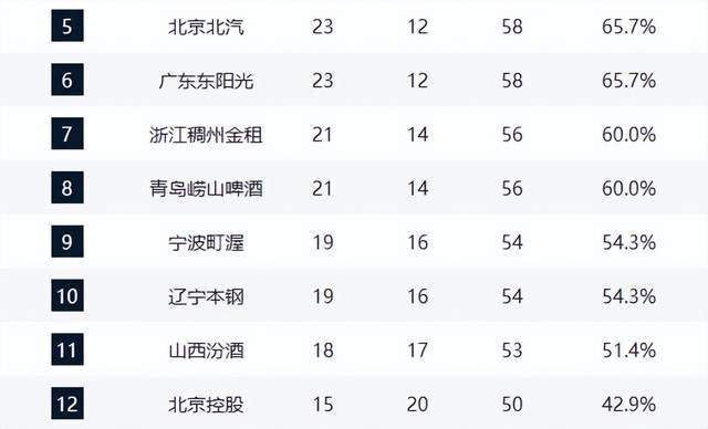 第九至十一名陷入混戰(zhàn),遼寧本鋼與寧波富邦同為18勝17負(fù),遼寧新簽大外援首秀表現(xiàn)尚可,或成扭轉(zhuǎn)局勢(shì)關(guān)鍵;山西汾酒則持續(xù)低迷,攻防兩端失衡,本輪慘敗暴露體系性問(wèn)題。