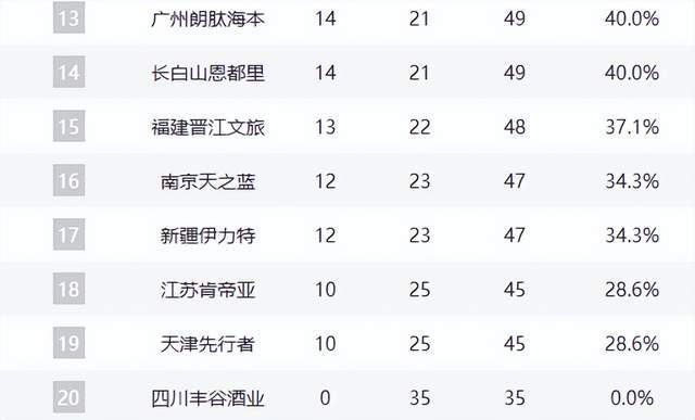 江蘇與天津落后5個(gè)勝場(chǎng),基本退出競(jìng)爭(zhēng);四川金強(qiáng)則遭遇恥辱性35連敗,賽季已無(wú)懸念,重建之路漫長(zhǎng)。