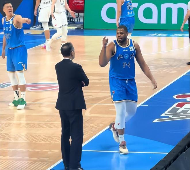 比賽進(jìn)行到第三節(jié)還剩6分35秒階段,北京陣地戰(zhàn)苦攻不下,仍然落后同曦雙位數(shù)分差,比賽死球階段,許利民啟用換人,用翟曉川替換下剛剛在前一回合吃到蓋帽的斯佩爾曼,打算上單外援。