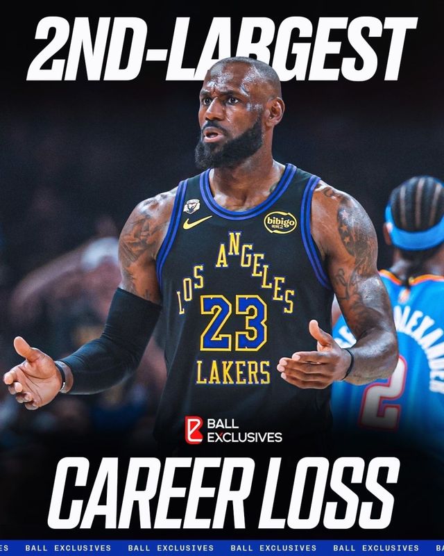 本賽季雷霆對(duì)陣湖人取得3勝0負(fù),其中包括上周五在俄城以139-96大勝湖人。那場(chǎng)43分的慘敗,也是詹姆斯職業(yè)生涯輸分第二多的比賽。