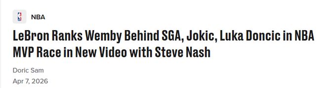 不過(guò),詹姆斯隨后表示,在今年的MVP角逐中,他會(huì)把雷霆球星亞歷山大、掘金球星約基奇以及湖人隊(duì)友東契奇排在文班亞馬之前。