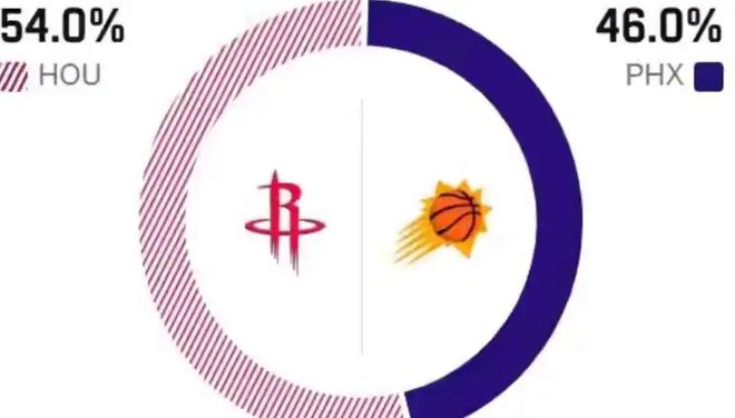 反觀太陽,在上一場比賽擊敗公牛,終結(jié)2連敗,以43勝35負(fù)排在西部第七。對陣公牛一戰(zhàn),球隊(duì)調(diào)整首發(fā),將吉萊斯皮放回替補(bǔ)帶隊(duì)第二陣容效果顯著,布克30分、格林25分表現(xiàn)高效;狄龍復(fù)出后出場時間穩(wěn)步提升,砍下15分,馬文·威廉姆斯14分8籃板。目前太陽與前后對手均有3個勝場差,基本鎖定第七,后續(xù)球隊(duì)在保證全員健康的前提下,大概率以練兵為主兼顧爭勝,所以,太陽的戰(zhàn)意并不如火箭足。賽前,ESPN預(yù)測本場比賽的結(jié)果,火箭勝率為54%,太陽取勝概率為46%。