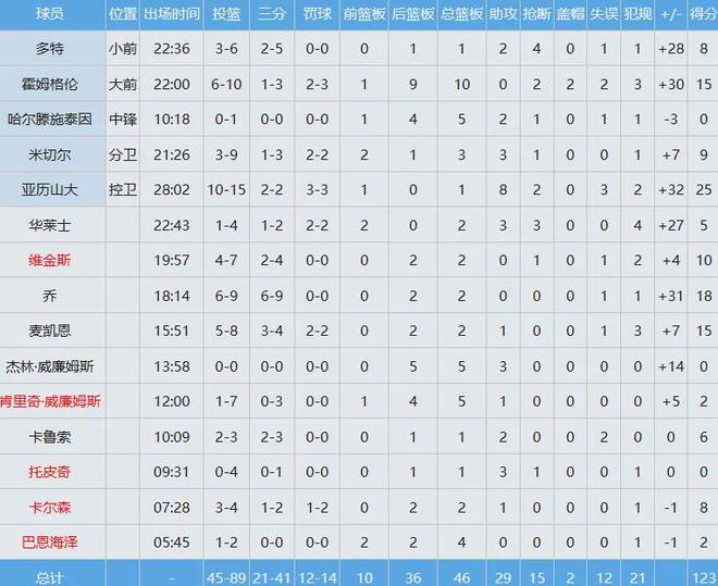 東契奇場均33.5分7.7板8.3助1.6斷,年薪4599萬美元;里夫斯場均23.3分4.7板5.5助1.1斷,年薪1394萬美元;詹姆斯場均20.8分6.1板7.1助1.1斷,年薪5262萬美元。