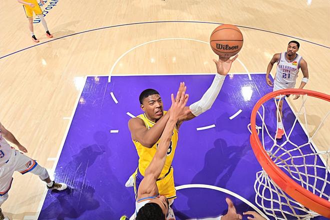 本場(chǎng)比賽中,湖人雖然遭遇了一場(chǎng)慘敗,但是球隊(duì)的先發(fā)鋒線大將八村塁(Rui Hachimura)的表現(xiàn)還是相當(dāng)不錯(cuò)的。八村塁全場(chǎng)出場(chǎng)25分34秒,投籃10中7,三分線外1中1,罰球3中0,得到了15分5籃板1助攻1蓋帽的數(shù)據(jù),還有2次失誤和1次犯規(guī),正負(fù)值為-24。八村塁在進(jìn)攻端還是展現(xiàn)出了自己不俗的得分能力,他也是有著不錯(cuò)的手感的,他也是通過各種方式拿下了不少分?jǐn)?shù),起到了自己在進(jìn)攻端的作用??上О舜鍓C在本場(chǎng)比賽中還是沒有辦法得到更多的出手機(jī)會(huì),他也還是沒有辦法起到更大的作用。八村塁在防守端的表現(xiàn)顯然是不太理想的,他也沒有辦法在防守端起到更大的作用,但是總體來(lái)看,八村塁的表現(xiàn)已經(jīng)不錯(cuò)了,要不是有他的出現(xiàn),湖人估計(jì)得要輸58分以上了。