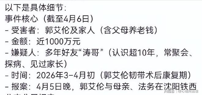 造謠者說郭艾倫術后回遼寧看廠房、被騙子趁虛而入。