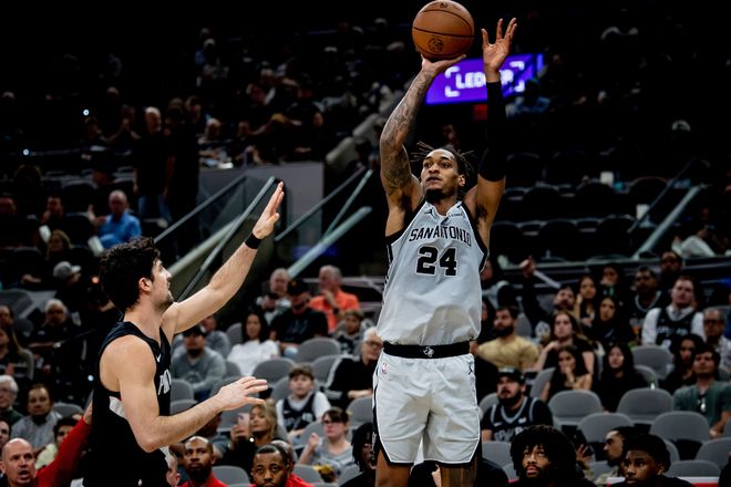馬刺隊的文班亞馬和卡斯?fàn)栆煌毕?,哈珀和科?nèi)特頂替首發(fā)。開拓者隊開賽后反客為主,卡馬拉和克林根各中三分,他們以8-2領(lǐng)先。??怂惯M(jìn)攻發(fā)力,一人連得10分幫助球隊反超。阿夫迪亞還擊5分,克林根、卡馬拉也輪流得分,首節(jié)還有5分35秒時開拓者隊以19-15領(lǐng)先。瓦塞爾和哈珀帶領(lǐng)球隊迅速回應(yīng)7分重新領(lǐng)跑,亨德森突破得手,布萊恩特替補登場貢獻(xiàn)5分,哈珀三分中的,馬刺隊以8-0的小高潮結(jié)束首節(jié),他們以32-23領(lǐng)先。