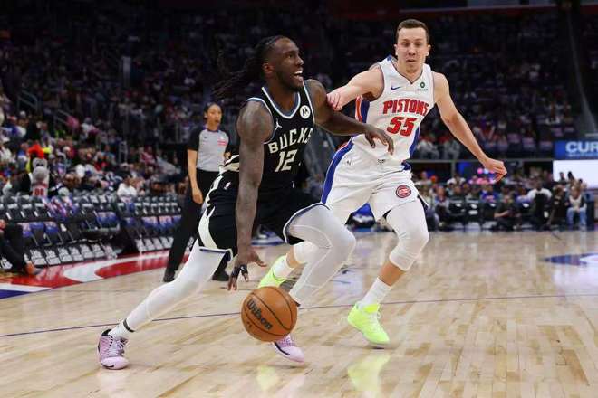 活塞上一場(chǎng)客場(chǎng)107-123輸給魔術(shù)結(jié)束3連勝,雄鹿上一場(chǎng)客場(chǎng)90-96輸給籃網(wǎng),本賽季前三次交鋒活塞2勝1負(fù)處于上風(fēng)。本場(chǎng)雄鹿缺少字母哥、庫(kù)茲馬、特納、波蒂斯、波特,活塞缺少赫爾特。首節(jié)前4分多鐘,雙方持續(xù)纏斗至14-14,并在之后維持活塞23-22領(lǐng)先。雙方再往后纏斗至27-27,活塞逐步打出一波7-1攻勢(shì)取得領(lǐng)先,首節(jié)結(jié)束活塞34-28領(lǐng)先雄鹿。首節(jié)活塞24中14,其中三分6中2,杜倫3中3得到8+4;雄鹿25中10,其中三分15中5,格林3記三分得到10分。