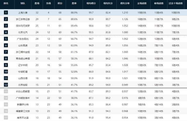 CBA常規(guī)賽已經進入最后沖刺階段,第36輪常規(guī)賽打完之后,本賽季只剩下最后六輪比賽,從積分榜格局來看,目前有11支球隊基本鎖定了季后賽,其中上海男籃已經成為本賽季頭號爭冠大熱門球隊,浙江廣廈也已經鎖定了第二的位置,而廣東、北京、山東、深圳這四支球隊還在哄搶第三和第四。山東、青島、浙江這三支球隊也已經提前鎖定季后賽席位,遼寧、寧波、山西打進季后賽也是沒有太多懸念,最后一個名額將會在北控、廣州、吉林、福建、同曦、新疆這六支球隊中產生。