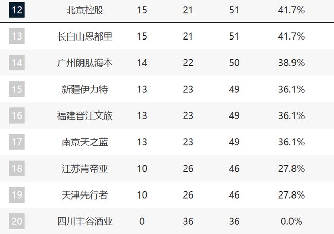 至于江蘇、天津,他們肯定都無緣了,因?yàn)槁浜罅?個(gè)勝場。四川則36連敗了。