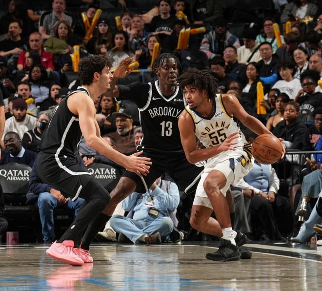 步行者過去3場遭遇3連敗,籃網(wǎng)過去兩場收獲2連勝,本賽季前兩次交鋒雙方各取一勝。籃網(wǎng)缺少波特、夏普、克拉克斯頓等,步行者缺少西亞卡姆、哈利伯頓、祖巴茨等。兩支擺爛球隊(duì)開啟對決,步行者首節(jié)攻防碾壓籃網(wǎng),首節(jié)步行者27中12,其中三分9中2,托平6中4得到12+5?;@網(wǎng)被限制21中5,其中三分11中2低迷,首節(jié)步行者已經(jīng)31-14領(lǐng)先籃網(wǎng)17分優(yōu)勢。