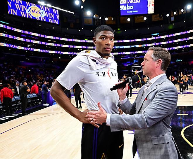 本場比賽中,湖人的先發(fā)鋒線大將八村塁(Rui Hachimura)還是保持了很好的狀態(tài)。八村塁全場出場30分46秒,投籃8中4,三分線外3中2,罰球4中3,得到了13分2籃板3助攻的數(shù)據(jù),還有2次失誤和4次犯規(guī),正負值則是達到了全場最高的+28。八村塁在進攻端其實手感還是不錯的,他也是能夠通過自己在中遠距離投籃方面的特點得到了不少分數(shù)的。除此之外,八村塁也展現(xiàn)出了一定的傳球能力和策應能力,在進攻端的作用還是比較明顯的。八村塁在防守端的表現(xiàn)其實也算是中規(guī)中矩,也沒有出現(xiàn)什么太多的問題??傮w來看,八村塁在本場比賽中也是發(fā)揮出了自己的特點,但是他其實也還是沒有辦法得到更多的出手機會,他也沒有得到更多的分數(shù)。不過總體來看,八村塁在場上時球隊的局面也是相當不錯的,他也為球隊的勝利做出了巨大的貢獻。