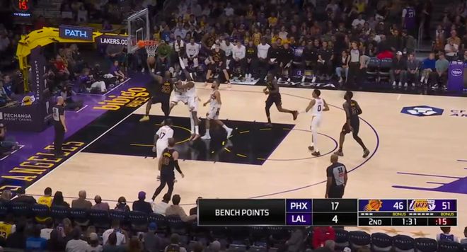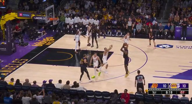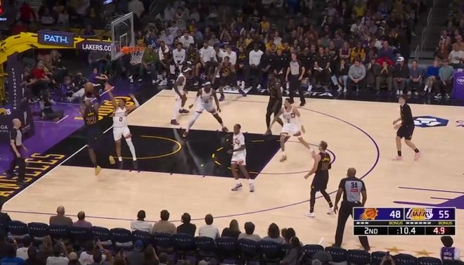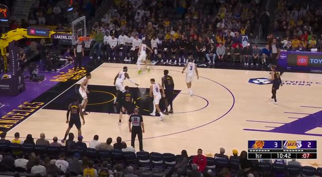 賽前太陽已經(jīng)鎖定西部第七,布克、格林、古德溫均沒有上場(chǎng);湖人則排名未定,需要一場(chǎng)勝利才能鎖定前四,確保首輪主場(chǎng)優(yōu)勢(shì)。