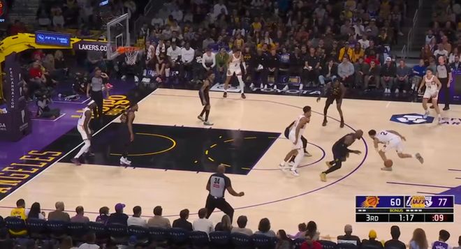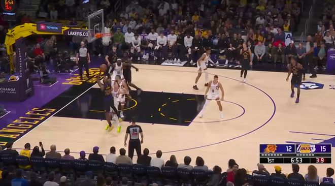 但東契奇和里夫斯受傷后,詹姆斯再次成為了原本那個(gè)持球大核詹姆斯,這幾場(chǎng)你能看到大量他的弧頂發(fā)牌、背身進(jìn)攻、持球突破,這些內(nèi)容過去兩個(gè)月時(shí)間并不常見。