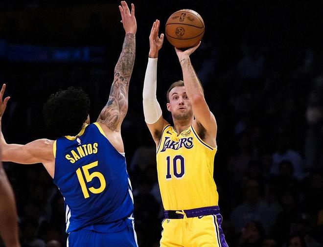 肯納德進攻就是個頂級冷血射手+聰明的無球高手。他最狠的是三分,出手快、姿勢穩(wěn)、不管怎么跑位、接球就扔都很準,是聯(lián)盟歷史級別的三分手 。他不粘球,全場不停繞掩護、反跑,總能溜到空位,只要詹姆斯、東契奇一吸引包夾,球到他手里基本就進。他不光會投,被人撲太狠時,會用假動作晃一下,運一步突破或急停中距離,左手終結也穩(wěn)。突破后還能分球給底角或空切的隊友,傳球很穩(wěn)、不失誤,完全不是那種只會站著等球的純射手,能幫湖人把進攻空間徹底拉開,讓內線和突破更輕松。