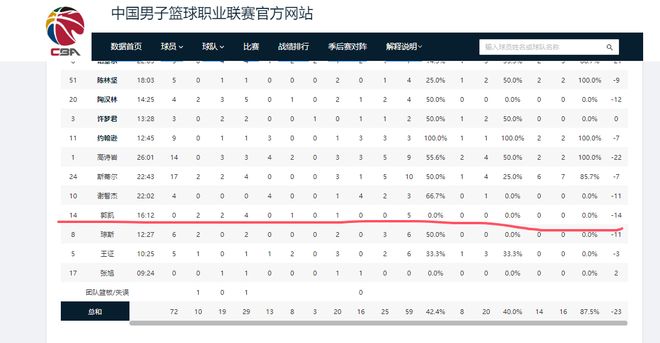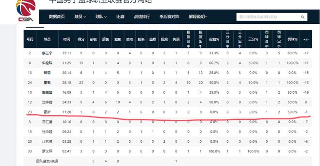 司職場上離籃筐最近的位置,郭凱本場卻投出了5中0的表現,是隊內唯一一個有投籃出手,但沒有命中成球員。