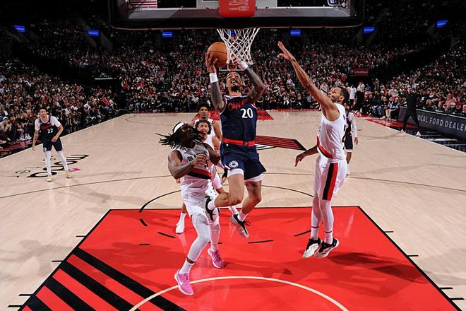 本場比賽中,快船的替補(bǔ)鋒線大將約翰-科林斯(John Collins)的表現(xiàn)實(shí)在是慘不忍睹??屏炙谷珗龀鰣?3分21秒,投籃3中0,三分線外1中0,全場1分未得,僅貢獻(xiàn)2籃板1蓋帽的數(shù)據(jù),還有2次失誤和2次犯規(guī),正負(fù)值為-18??屏炙乖诒緢霰荣愔性诠シ纼啥说谋憩F(xiàn)都是慘不忍睹的水平,他的進(jìn)攻效率一塌糊涂,得分能力完全沒有發(fā)揮出來,甚至都沒有得到1分。不僅如此,科林斯也沒有展現(xiàn)出自己的傳球能力和策應(yīng)能力,在進(jìn)攻端算是給球隊(duì)造成了不小的負(fù)面影響。不僅如此,科林斯在防守端的表現(xiàn)也是一塌糊涂的水平,同樣沒有起到任何的效果。本場比賽中,科林斯的出場時(shí)間低到了本賽季的最低點(diǎn),而且他在場上的效果也是一塌糊涂的,這也是他在本賽季至今的最差一戰(zhàn)。