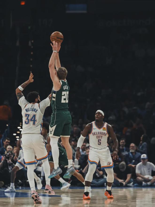 2025年季后賽,AJ-格林場(chǎng)均砍下11分2.8籃板2助攻,三分命中率高達(dá)51.4%,場(chǎng)均能命中3.6記三分。他現(xiàn)有的合同2026年夏天到期,2025年10月18日,雄鹿4年4500萬(wàn)美元跟AJ-格林完成續(xù)約,將合同延長(zhǎng)至2030年。