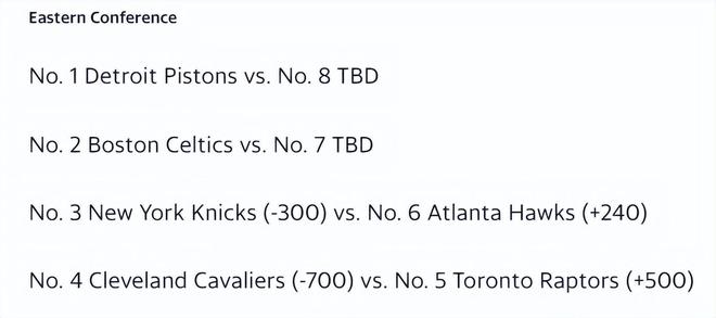 在常規(guī)賽徹底結(jié)束后《雅虎體育》出爐了季后賽首輪的賠率情況,東部:尼克斯(3)VS老鷹(6),尼克斯-300、老鷹+240看好尼克斯晉級(jí);