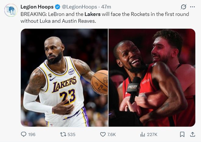 NBA常規(guī)賽已經(jīng)完結(jié),湖人鎖定西部第四,火箭鎖定西部第五,那么在首輪就是火箭VS湖人,LAL手握主場(chǎng)優(yōu)勢(shì)。