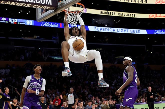 本場比賽中,湖人的替補(bǔ)側(cè)翼新秀阿杜-蒂羅(Adou Thiero)的表現(xiàn)還是頗具亮點(diǎn)的。蒂羅全場出場12分鐘,投籃4中4,以100%的命中率拿下了8分4籃板2助攻的數(shù)據(jù),還有2次失誤和2次犯規(guī),正負(fù)值為+3。蒂羅在進(jìn)攻端展現(xiàn)出了自己不俗的沖擊力和爆發(fā)力,他在對手內(nèi)線制造了一定的威脅,他在運(yùn)動能力方面的優(yōu)勢也是充分暴露了出來,看起來對手也很難對他進(jìn)行有效地限制。蒂羅在防守端也有著不俗的籃板爭搶能力,也能夠在防守端通過自己在身體天賦和運(yùn)動能力方面的優(yōu)勢給對手制造一些麻煩。當(dāng)然了,蒂羅在技術(shù)方面也是有些粗糙的,在經(jīng)驗(yàn)方面也是有些不足的,這也是他需要提升的地方??傮w來看,蒂羅也是在有限的出場時(shí)間內(nèi)將自己各方面的特點(diǎn)都發(fā)揮了出來。