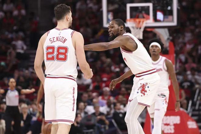 但即便存在這些短板,火箭的整體實(shí)力依舊在殘陣湖人之上。杜蘭特的加盟,完美解決了球隊(duì)關(guān)鍵時(shí)刻終結(jié)能力不足、經(jīng)驗(yàn)欠缺的問題,這位超級巨星本賽季打出了最佳陣容級別的表現(xiàn),成為火箭的絕對核心。