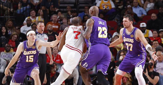 湖人在常規(guī)賽的三次交手中贏下了兩場,其中東契奇在三月份客場兩勝火箭的比賽中合計砍下76分。