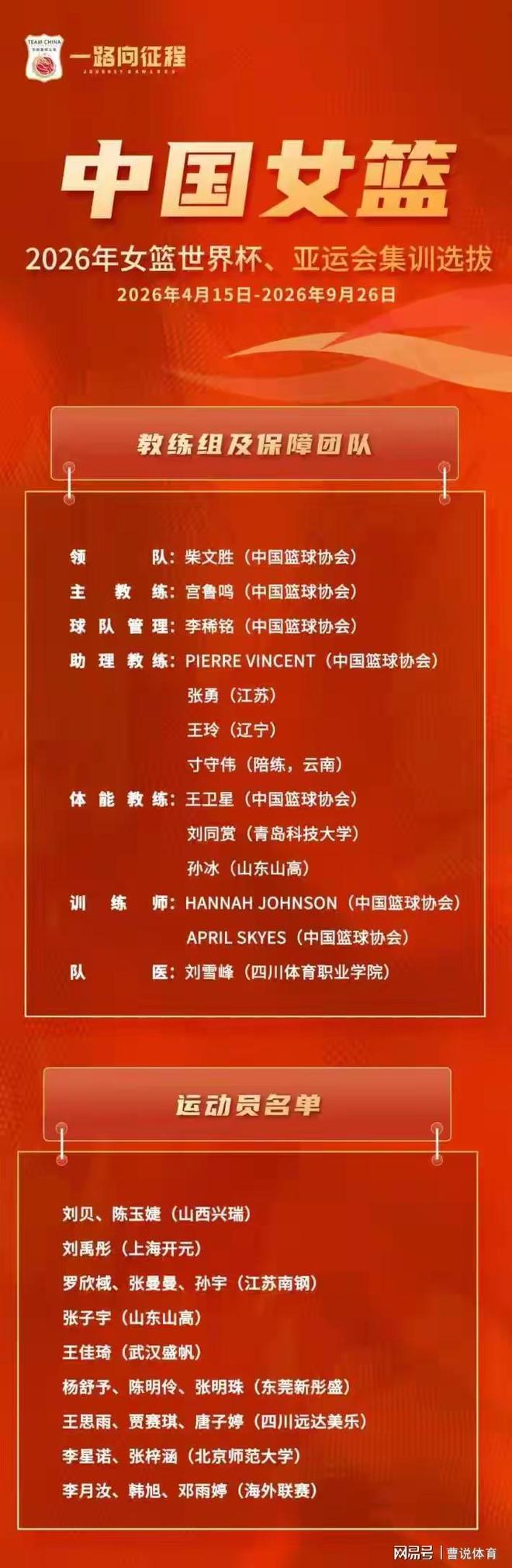 反觀(guān)本次集訓(xùn)的19人,其中山西興瑞有:劉貝、陳玉婕,上海開(kāi)元有:劉禹彤,江蘇南鋼有:羅欣棫、張曼曼、孫宇,山東山高有:張子宇,武漢盛帆有:王佳琦,東莞新彤盛有:楊舒予、陳明伶、張明珠,四川遠(yuǎn)達(dá)美樂(lè)有:王思雨、賈賽琪、唐子婷,北京師范大學(xué)有:李星諾、張梓涵,海外聯(lián)賽的有:李月汝、韓旭、鄧雨婷(NCAA)。