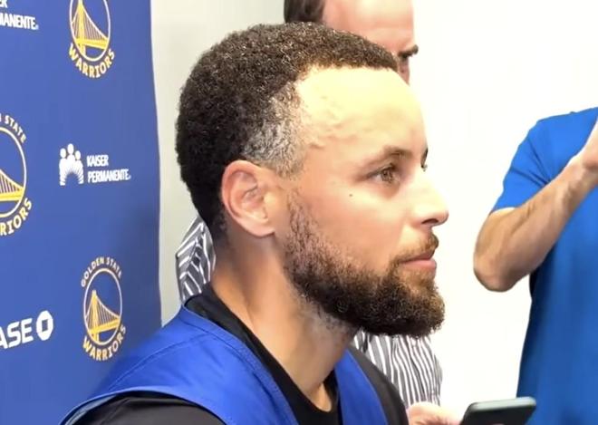 北京時間4月14日,在NBA附加賽勇士對陣快船賽前,庫里接受了媒體的采訪。
