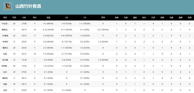 山西女籃的國(guó)字號(hào)球員們:翟若云5分,陳玉婕1分,張茹10分,要知道陳玉婕作為宮魯鳴的愛(ài)將,這場(chǎng)比賽16分鐘,6中0+三分2中0,拿到1分1助攻0籃板2犯規(guī),命中率0%。