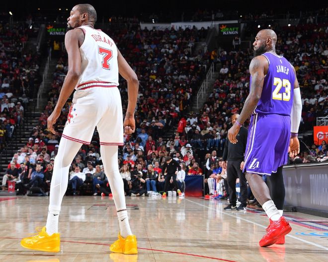 遺憾的是詹杜對決是火湖大戰(zhàn)的最大看點,卻不是這組對決的勝負(fù)手。換句話說他倆還是各自球隊門面,卻已經(jīng)無法左右比賽走勢了。詹杜無法左右比賽走勢并非都是因為年事已高,還因為湖人火箭會不約而同包夾他倆。讓他倆根本沒有單挑的機會,因此詹杜都會成各自球隊的明牌,而勝負(fù)關(guān)鍵取決于他們身旁的隊友。