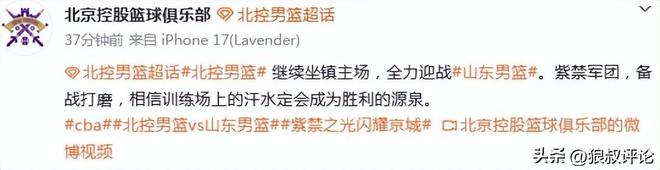 賽前,北控男籃官方罕見發(fā)出了相關(guān)的比賽預(yù)告表示: