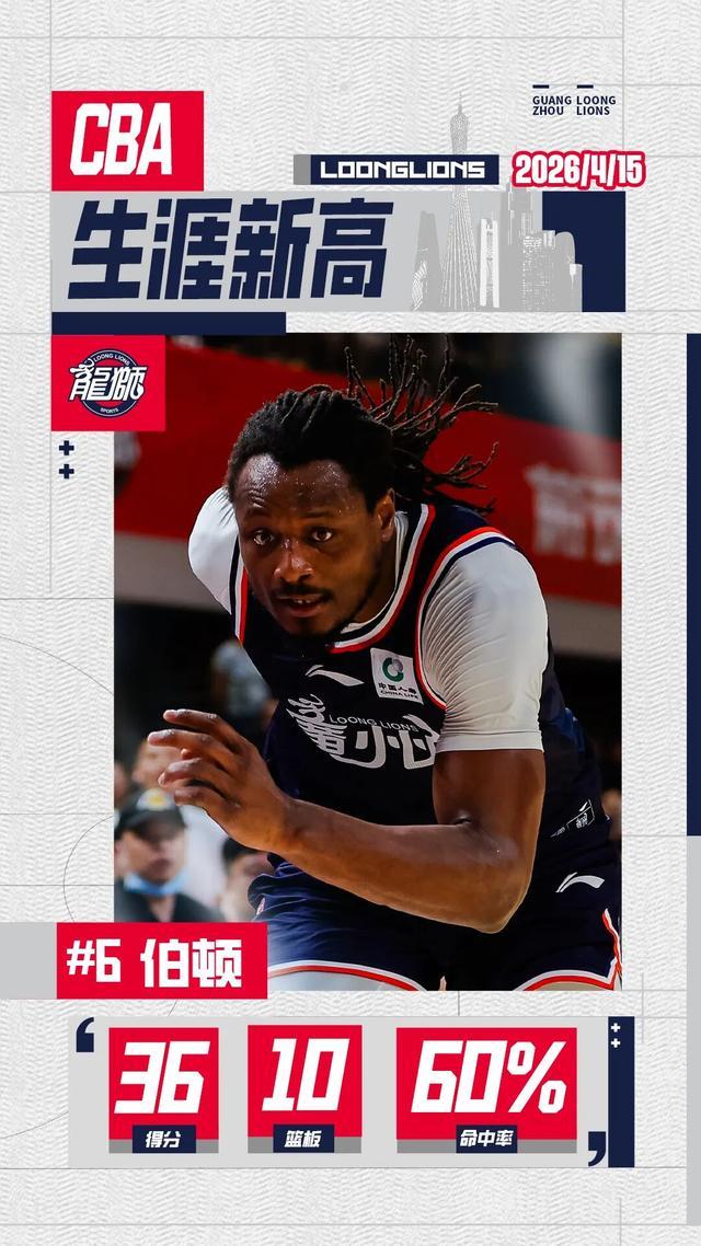 ? 恭喜伯頓在本場比賽創(chuàng)下CBA生涯新高,斬獲36分10籃板,命中率高達60%!保持勢頭,繼續(xù)火力全開吧!