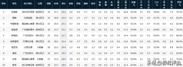史密斯這份成績(jī)單,得分排在外援第一的位置。