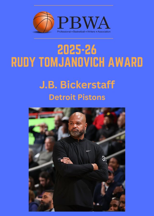 職業(yè)籃球作家協(xié)會主席霍華德-貝克表示:“無論是擔(dān)任助教還是球隊主帥,J.B.在聯(lián)盟多年來始終是絕佳的采訪合作對象。協(xié)會成員十分欣賞他的坦誠,以及愿意坦誠探討場內(nèi)場外各類話題的態(tài)度。無論比賽勝負(fù),他總能從容得體地完成采訪,輸出深刻獨到的見解,幫助大眾更好地理解籃球比賽?!?/p>
