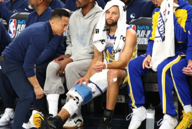 勇士隊(duì)在賽前非常不被看好,他們的陣容太老了,傷病也太多了,而且?guī)炖镆恢笔艿铰詡〉挠绊?,能保持多少狀態(tài)還不知道。在比賽進(jìn)行過程中,庫里時不時還要在場下接受冰敷膝蓋的處理,緩解炎癥帶來的影響。