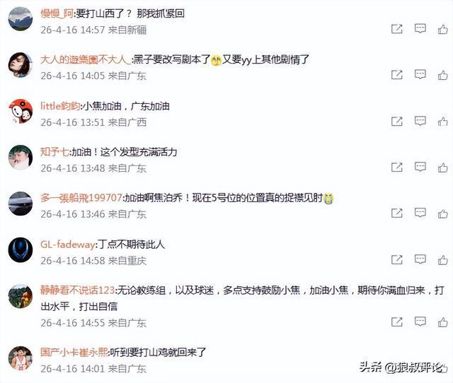 球迷對于焦泊喬的回歸,不少送出了肯定的態(tài)度,尤其是發(fā)型調(diào)整后,整個(gè)人感覺開朗了。