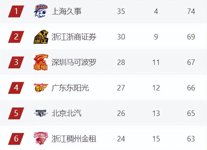 第3-5排名之間還存在比較大的懸念,深圳領(lǐng)先廣東一個勝場,廣東又領(lǐng)先北京一個勝場。盡管這三支球隊的排名看似相對穩(wěn)定,但倘若后續(xù)比賽中狀態(tài)出現(xiàn)起伏,排名仍存在變動的可能。
